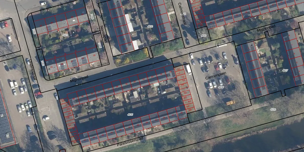 Het perceel waarop Mignonpad 30 staat heeft een oppervlakte van 3711 m². Dit is een zeer groot perceel. De perceeloppervlakte wordt geregistreerd door het Kadaster. Gedetailleerde informatie over de maten van dit perceel kunt u vinden in het rapport Kadastrale kaart met maatvoering van Mignonpad 30.