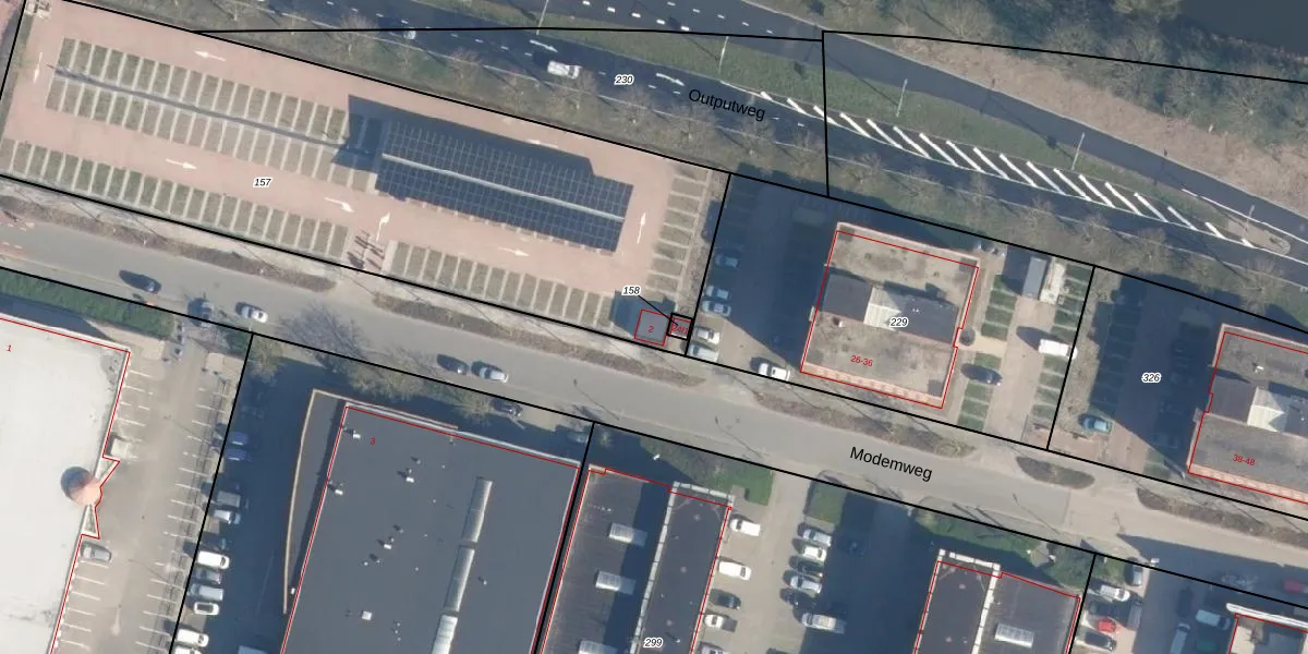 Het perceel waarop Modemweg 2 staat heeft een oppervlakte van 3230 m². Dit is een zeer groot perceel. De perceeloppervlakte wordt geregistreerd door het Kadaster. Gedetailleerde informatie over de maten van dit perceel kunt u vinden in het rapport Kadastrale kaart met maatvoering van Modemweg 2.