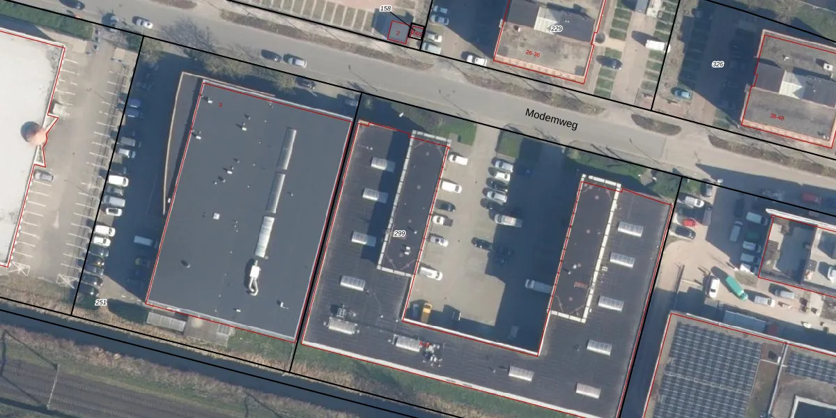 Het perceel waarop Modemweg 7 staat heeft een oppervlakte van 5485 m². Dit is een zeer groot perceel. De perceeloppervlakte wordt geregistreerd door het Kadaster. Gedetailleerde informatie over de maten van dit perceel kunt u vinden in het rapport Kadastrale kaart met maatvoering van Modemweg 7.