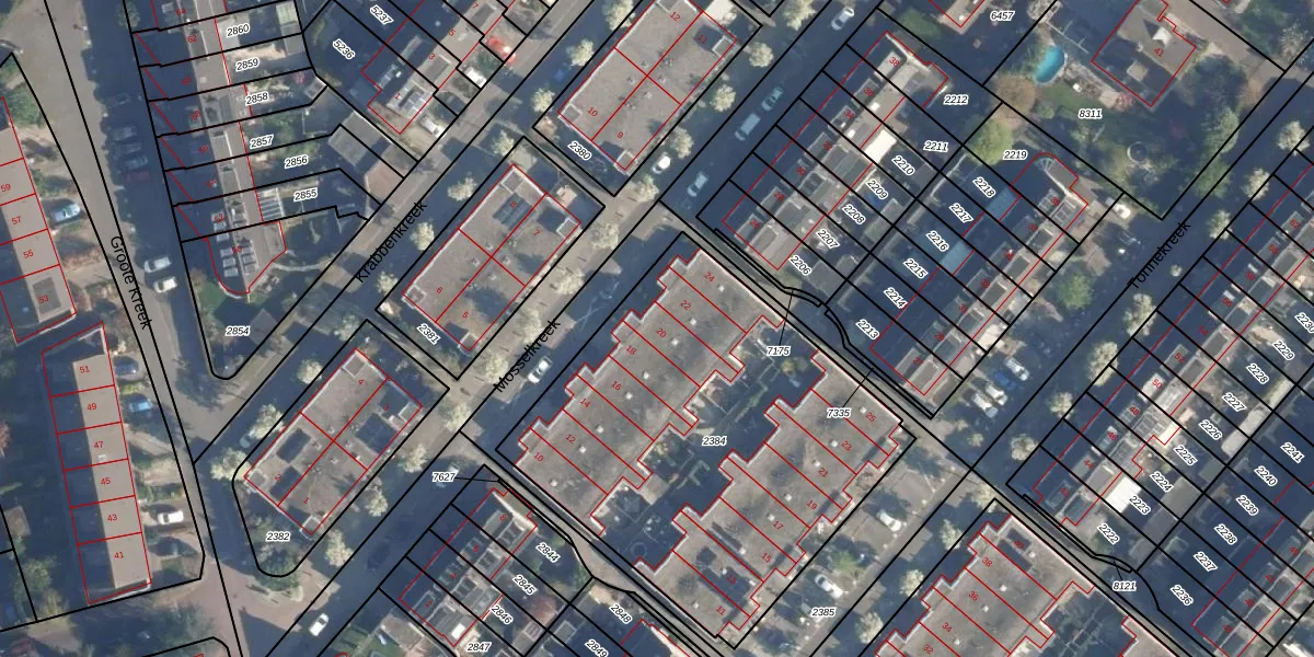 Mosselkreek 20 is gelegen op kadastraal perceel AMF00O2384. Deze kadastrale aanduiding is uniek en wordt gebruikt door het Kadaster om eigendomsrechten en andere zakelijke rechten vast te leggen. Het perceel maakt onderdeel uit van de kadastrale gemeente Amersfoort.
