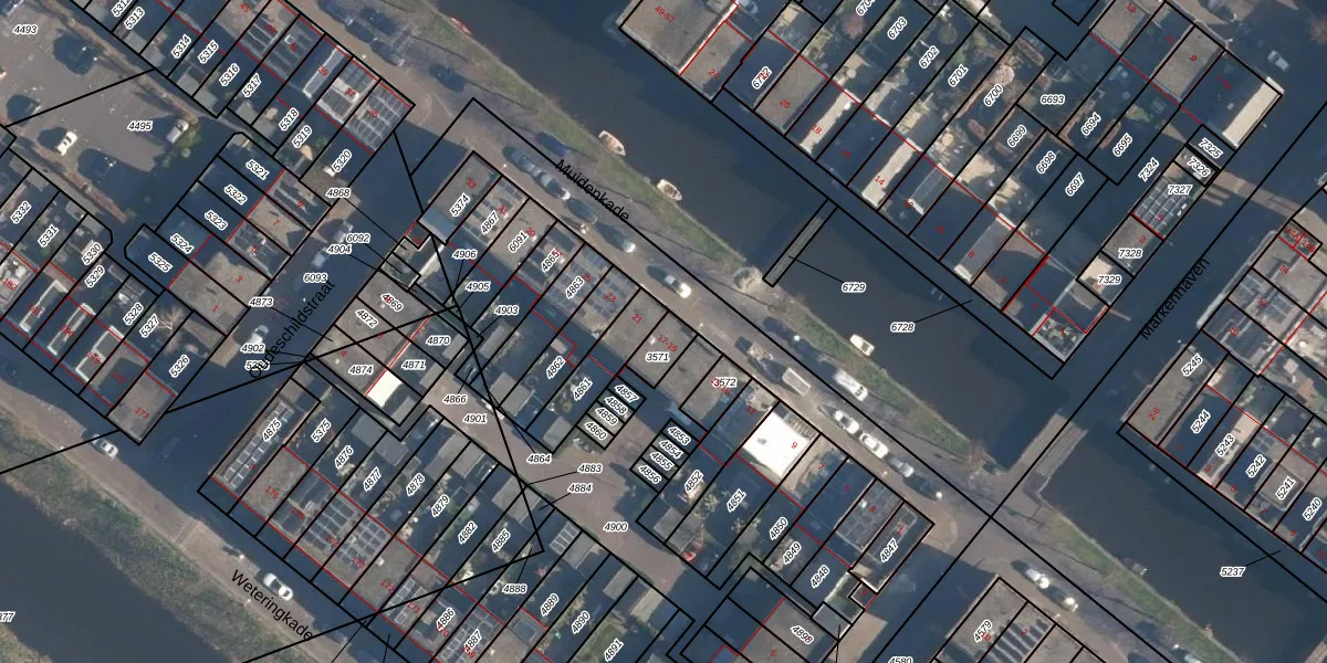 Het perceel waarop Muidenkade 17 staat heeft een oppervlakte van 60 m². Dit is een klein perceel. De perceeloppervlakte wordt geregistreerd door het Kadaster. Gedetailleerde informatie over de maten van dit perceel kunt u vinden in het rapport Kadastrale kaart met maatvoering van Muidenkade 17.