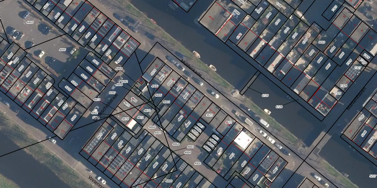Muidenkade 25 is gelegen op kadastraal perceel HLD02B4863. Deze kadastrale aanduiding is uniek en wordt gebruikt door het Kadaster om eigendomsrechten en andere zakelijke rechten vast te leggen. Het perceel maakt onderdeel uit van de kadastrale gemeente Hoogland.