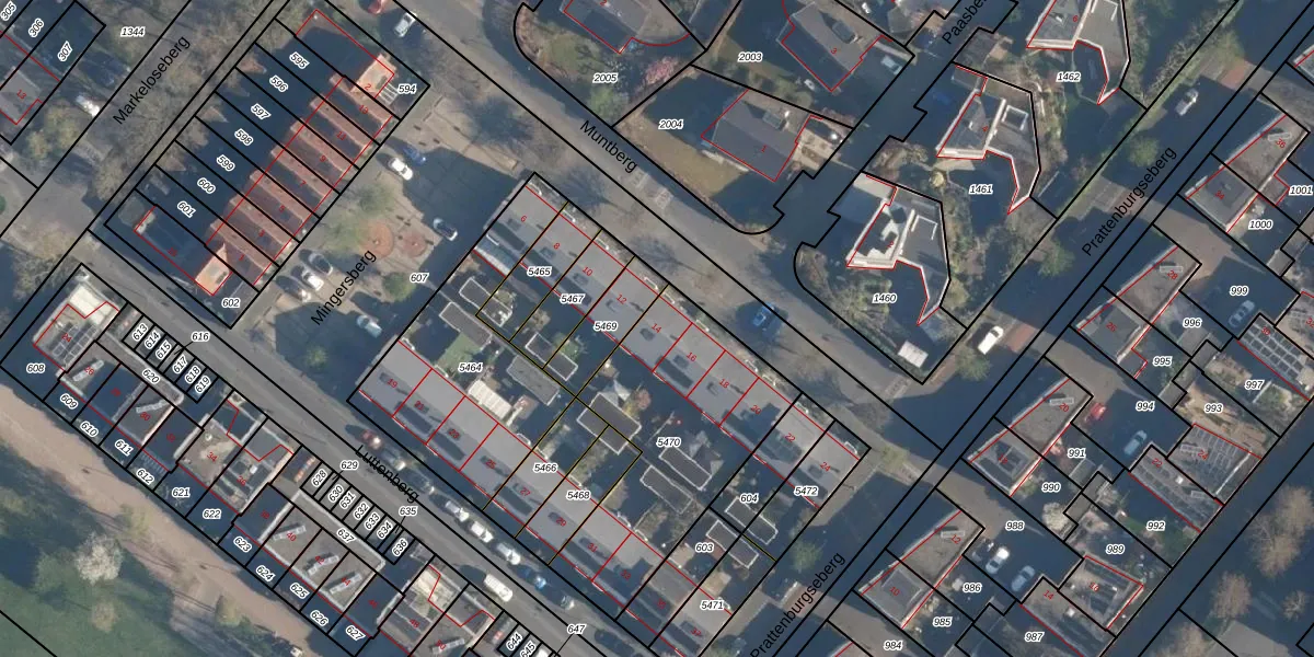 Het perceel waarop Muntberg 14 staat heeft een oppervlakte van 885 m². Dit is een groot perceel. De perceeloppervlakte wordt geregistreerd door het Kadaster. Gedetailleerde informatie over de maten van dit perceel kunt u vinden in het rapport Kadastrale kaart met maatvoering van Muntberg 14.