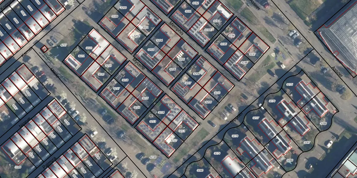 Het perceel waarop Mycene 4 staat heeft een oppervlakte van 166 m². Dit is een middelgroot perceel. De perceeloppervlakte wordt geregistreerd door het Kadaster. Gedetailleerde informatie over de maten van dit perceel kunt u vinden in het rapport Kadastrale kaart met maatvoering van Mycene 4.