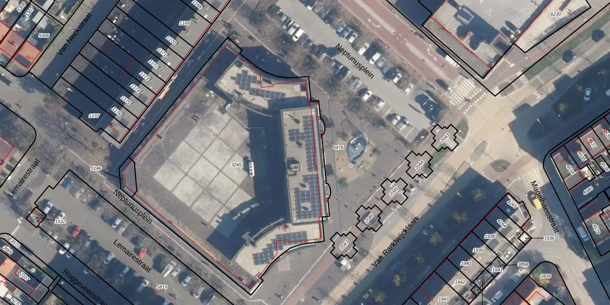 Het perceel waarop Neptunusplein 47 staat heeft een oppervlakte van 3440 m². Dit is een zeer groot perceel. De perceeloppervlakte wordt geregistreerd door het Kadaster. Gedetailleerde informatie over de maten van dit perceel kunt u vinden in het rapport Kadastrale kaart met maatvoering van Neptunusplein 47.