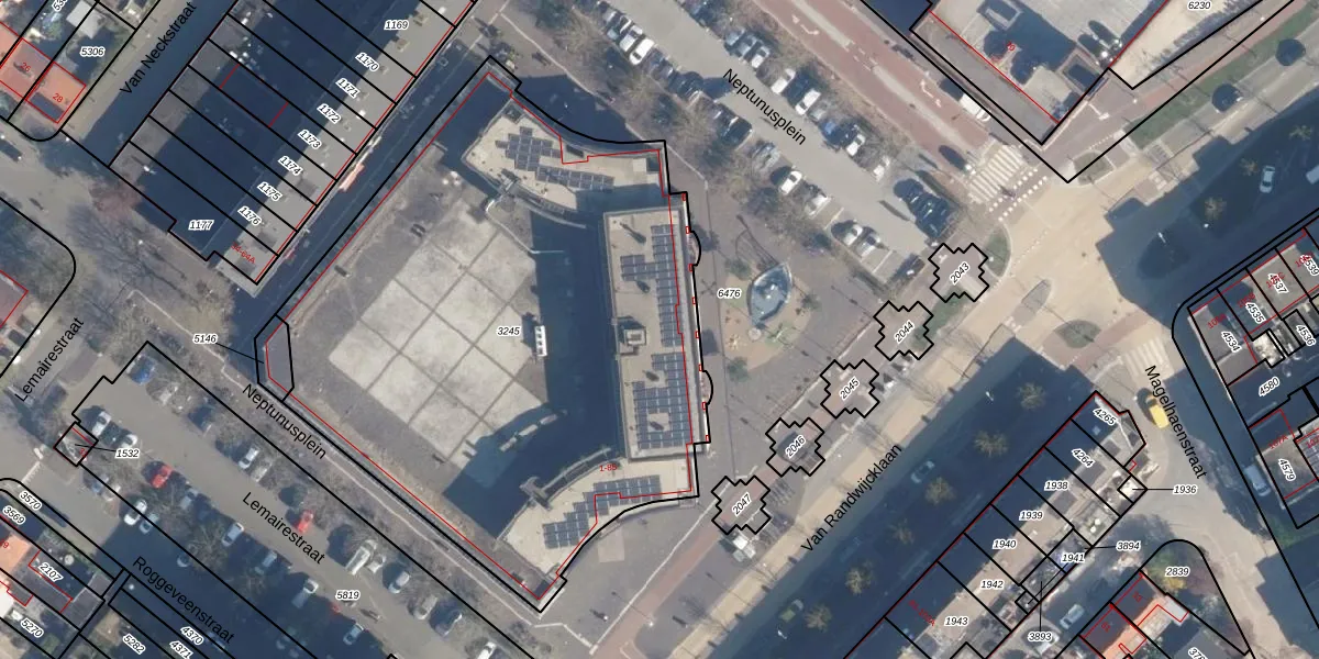 Het perceel waarop Neptunusplein 55 staat heeft een oppervlakte van 3440 m². Dit is een zeer groot perceel. De perceeloppervlakte wordt geregistreerd door het Kadaster. Gedetailleerde informatie over de maten van dit perceel kunt u vinden in het rapport Kadastrale kaart met maatvoering van Neptunusplein 55.