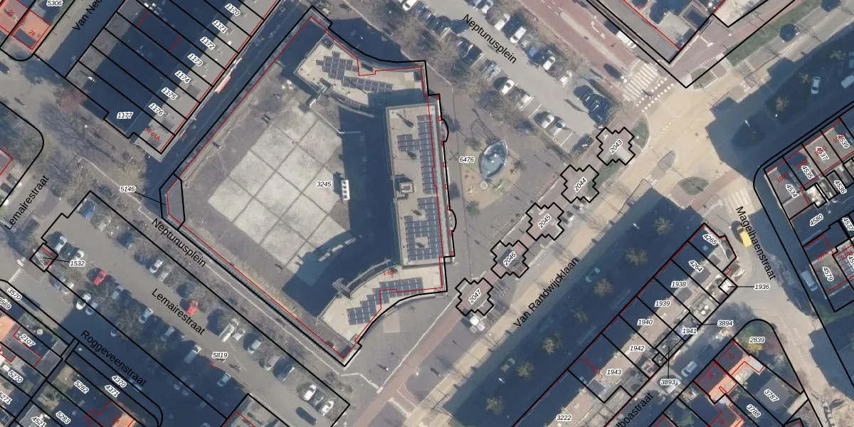 Het perceel waarop Neptunusplein 79 staat heeft een oppervlakte van 3440 m². Dit is een zeer groot perceel. De perceeloppervlakte wordt geregistreerd door het Kadaster. Gedetailleerde informatie over de maten van dit perceel kunt u vinden in het rapport Kadastrale kaart met maatvoering van Neptunusplein 79.