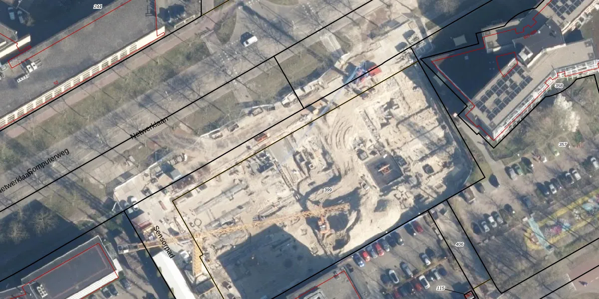 Het perceel waarop Netwerklaan 381 staat heeft een oppervlakte van 4278 m². Dit is een zeer groot perceel. De perceeloppervlakte wordt geregistreerd door het Kadaster. Gedetailleerde informatie over de maten van dit perceel kunt u vinden in het rapport Kadastrale kaart met maatvoering van Netwerklaan 381.