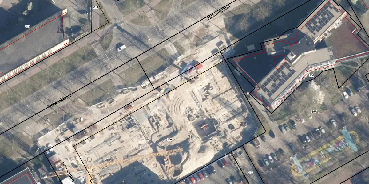 Het perceel waarop Netwerklaan 433 staat heeft een oppervlakte van 4278 m². Dit is een zeer groot perceel. De perceeloppervlakte wordt geregistreerd door het Kadaster. Gedetailleerde informatie over de maten van dit perceel kunt u vinden in het rapport Kadastrale kaart met maatvoering van Netwerklaan 433.