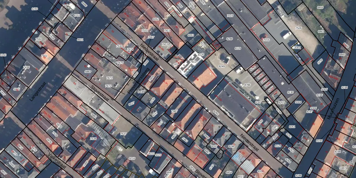 Het perceel waarop Nieuwstraat 9 staat heeft een oppervlakte van 187 m². Dit is een middelgroot perceel. De perceeloppervlakte wordt geregistreerd door het Kadaster. Gedetailleerde informatie over de maten van dit perceel kunt u vinden in het rapport Kadastrale kaart met maatvoering van Nieuwstraat 9.