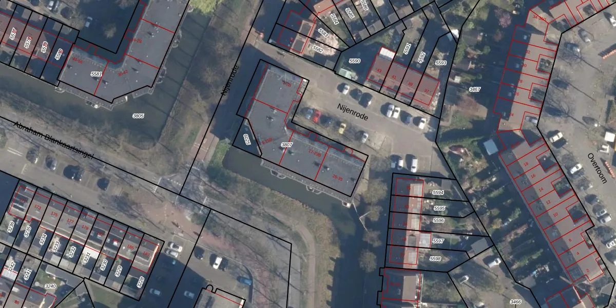 Nijenrode 19-A is gelegen op kadastraal perceel AMF00K3807. Deze kadastrale aanduiding is uniek en wordt gebruikt door het Kadaster om eigendomsrechten en andere zakelijke rechten vast te leggen. Het perceel maakt onderdeel uit van de kadastrale gemeente Amersfoort.