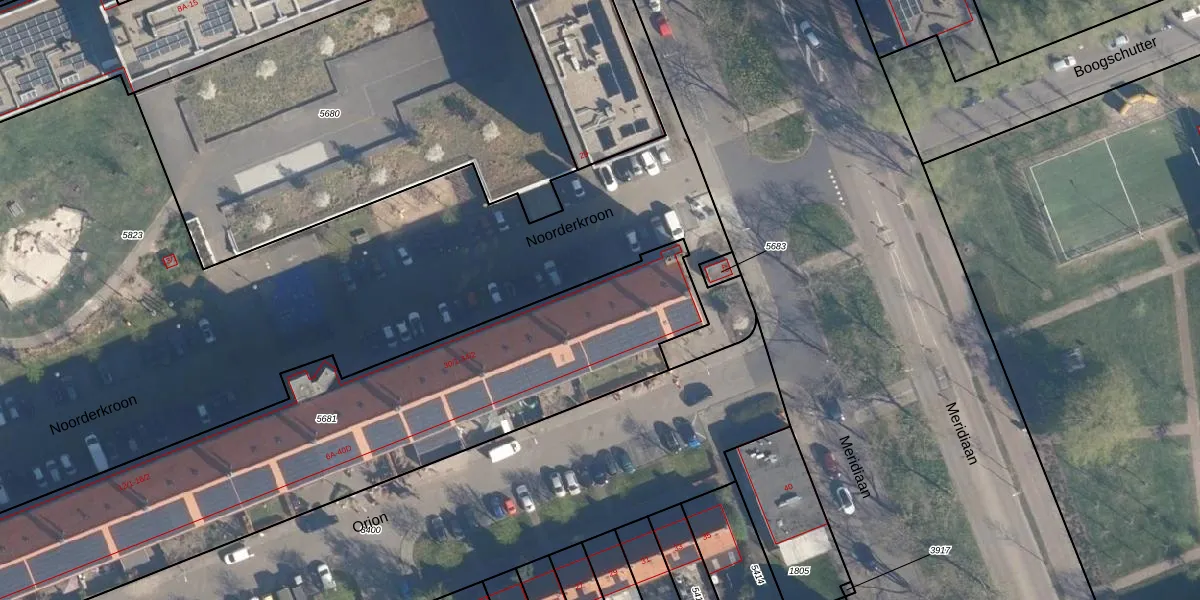 Het perceel waarop Noorderkroon 34-1 staat heeft een oppervlakte van 2520 m². Dit is een zeer groot perceel. De perceeloppervlakte wordt geregistreerd door het Kadaster. Gedetailleerde informatie over de maten van dit perceel kunt u vinden in het rapport Kadastrale kaart met maatvoering van Noorderkroon 34-1.