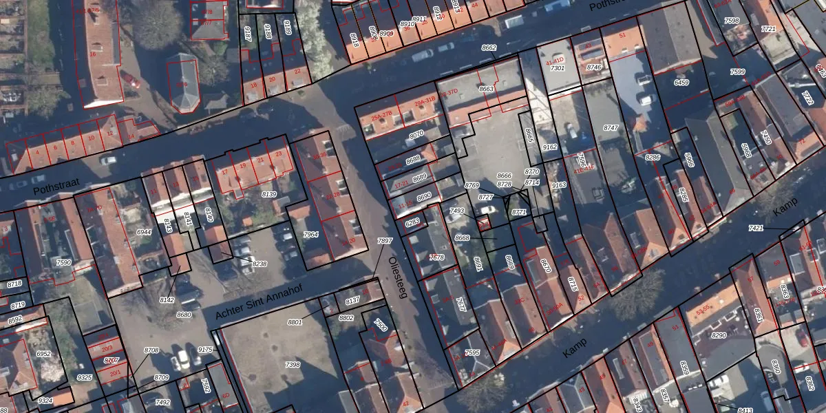 Het perceel waarop Oliesteeg 15 staat heeft een oppervlakte van 99 m². Dit is een klein perceel. De perceeloppervlakte wordt geregistreerd door het Kadaster. Gedetailleerde informatie over de maten van dit perceel kunt u vinden in het rapport Kadastrale kaart met maatvoering van Oliesteeg 15.