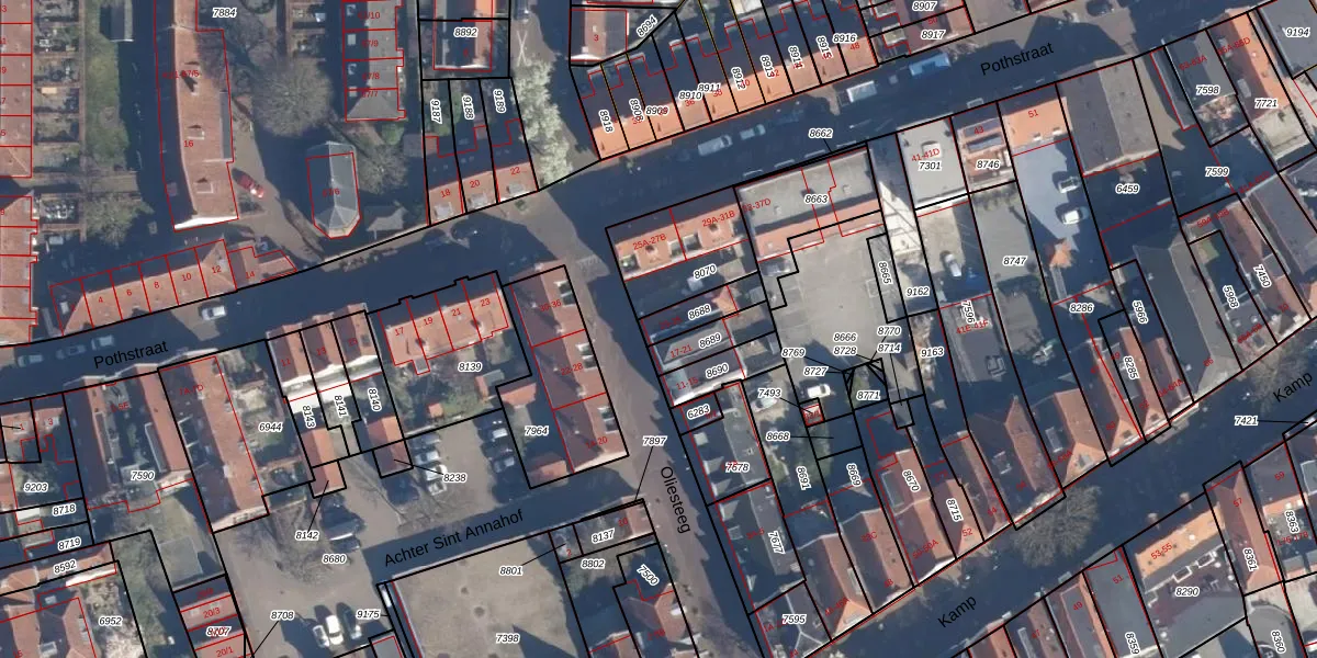 Het perceel waarop Oliesteeg 23 staat heeft een oppervlakte van 88 m². Dit is een klein perceel. De perceeloppervlakte wordt geregistreerd door het Kadaster. Gedetailleerde informatie over de maten van dit perceel kunt u vinden in het rapport Kadastrale kaart met maatvoering van Oliesteeg 23.