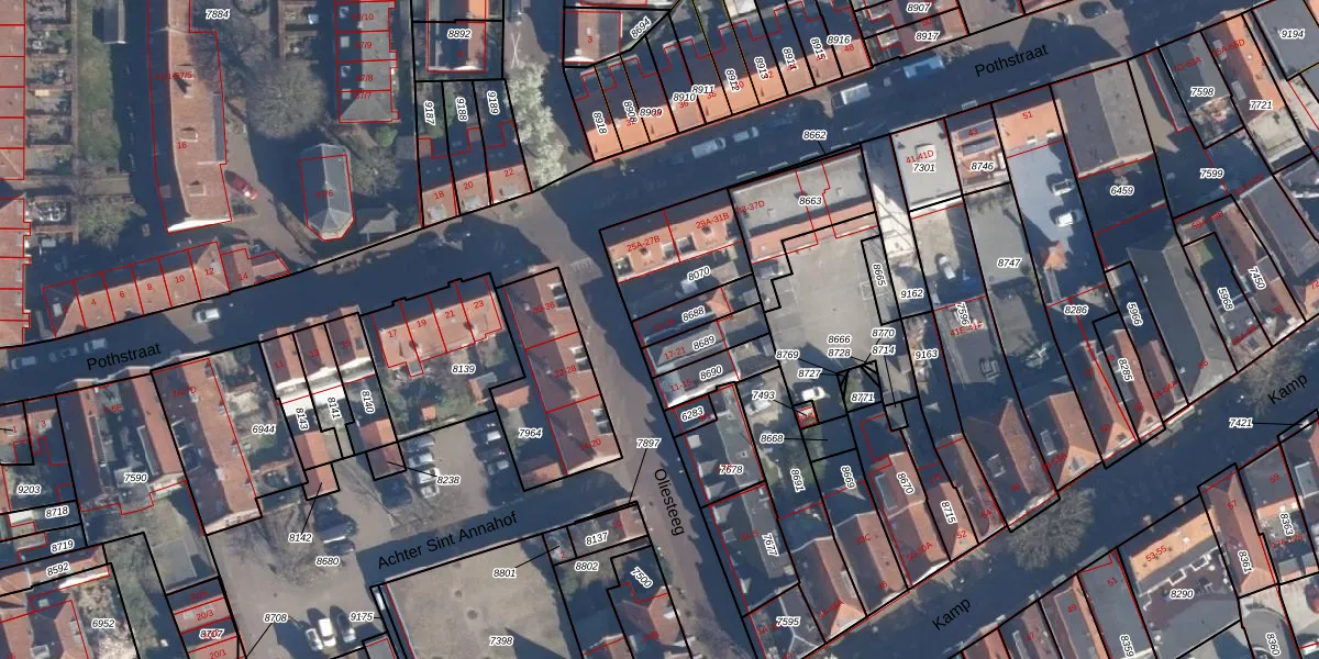 Het perceel waarop Oliesteeg 25 staat heeft een oppervlakte van 88 m². Dit is een klein perceel. De perceeloppervlakte wordt geregistreerd door het Kadaster. Gedetailleerde informatie over de maten van dit perceel kunt u vinden in het rapport Kadastrale kaart met maatvoering van Oliesteeg 25.