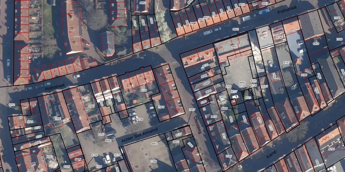 Het perceel waarop Oliesteeg 28 staat heeft een oppervlakte van 398 m². Dit is een groot perceel. De perceeloppervlakte wordt geregistreerd door het Kadaster. Gedetailleerde informatie over de maten van dit perceel kunt u vinden in het rapport Kadastrale kaart met maatvoering van Oliesteeg 28.