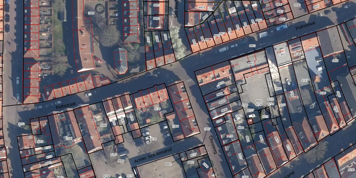 Het perceel waarop Oliesteeg 34 staat heeft een oppervlakte van 398 m². Dit is een groot perceel. De perceeloppervlakte wordt geregistreerd door het Kadaster. Gedetailleerde informatie over de maten van dit perceel kunt u vinden in het rapport Kadastrale kaart met maatvoering van Oliesteeg 34.