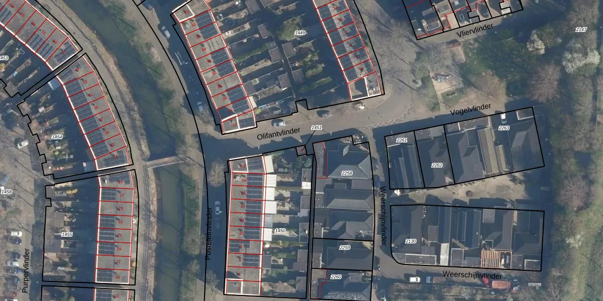 Olifantvlinder 2 is gelegen op kadastraal perceel AMF00N1451. Deze kadastrale aanduiding is uniek en wordt gebruikt door het Kadaster om eigendomsrechten en andere zakelijke rechten vast te leggen. Het perceel maakt onderdeel uit van de kadastrale gemeente Amersfoort.