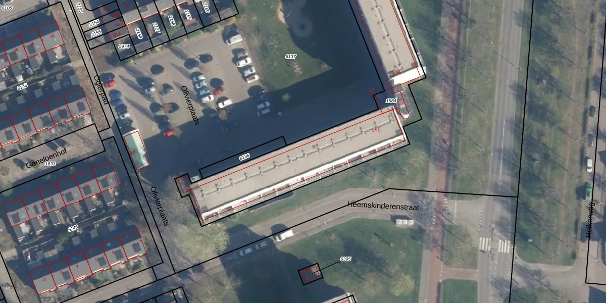 Het perceel waarop Olivierplaats 33 staat heeft een oppervlakte van 1848 m². Dit is een zeer groot perceel. De perceeloppervlakte wordt geregistreerd door het Kadaster. Gedetailleerde informatie over de maten van dit perceel kunt u vinden in het rapport Kadastrale kaart met maatvoering van Olivierplaats 33.