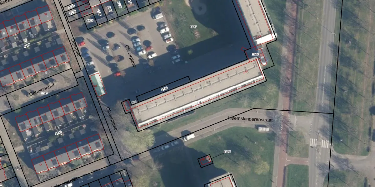 Het perceel waarop Olivierplaats 61 staat heeft een oppervlakte van 1848 m². Dit is een zeer groot perceel. De perceeloppervlakte wordt geregistreerd door het Kadaster. Gedetailleerde informatie over de maten van dit perceel kunt u vinden in het rapport Kadastrale kaart met maatvoering van Olivierplaats 61.