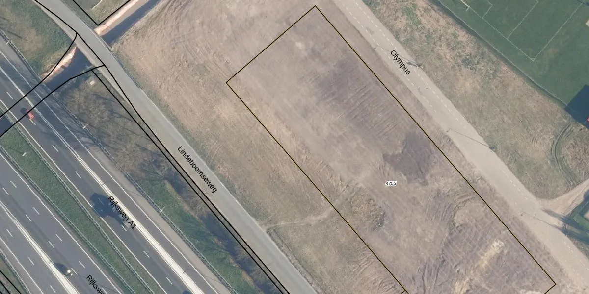 Het perceel waarop het adres ligt is HLD02-O-4755. De afkorting 'HLD02' staat voor kadastrale gemeente Hoogland. De oppervlakte van het perceel is 5000 m². Dat is groter dan gemiddeld in Hoogland, waar de gemiddelde perceeloppervlakte op 1507,48 m² ligt. Het grootste perceel in de kadastrale gemeente is 80,7 ha. Het kleinste perceel heeft een oppervlakte van 0 m². Er zijn 113 adressen aanwezig op het perceel. In de Basisregistratie Kadaster (BRK) werden de grenzen van het perceel geregistreerd op 08-05-2024.