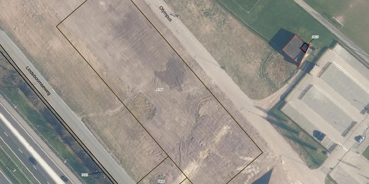 Het perceel waarop Olympus 55 staat heeft een oppervlakte van 5000 m². Dit is een zeer groot perceel. De perceeloppervlakte wordt geregistreerd door het Kadaster. Gedetailleerde informatie over de maten van dit perceel kunt u vinden in het rapport Kadastrale kaart met maatvoering van Olympus 55.