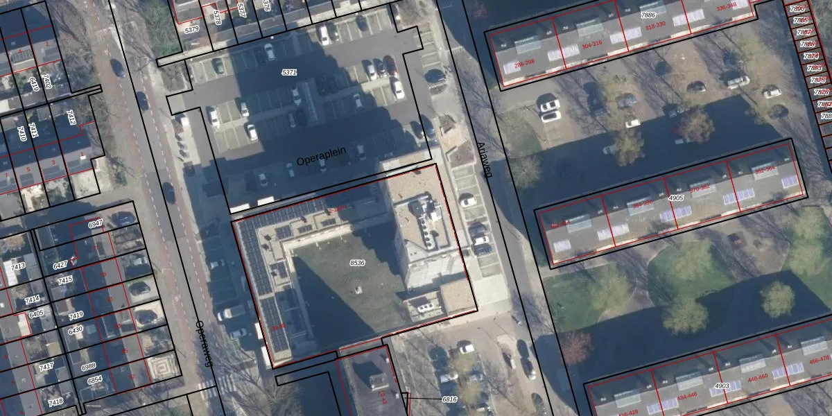 Het perceel waarop Operaplein 106 staat heeft een oppervlakte van 1905 m². Dit is een zeer groot perceel. De perceeloppervlakte wordt geregistreerd door het Kadaster. Gedetailleerde informatie over de maten van dit perceel kunt u vinden in het rapport Kadastrale kaart met maatvoering van Operaplein 106.