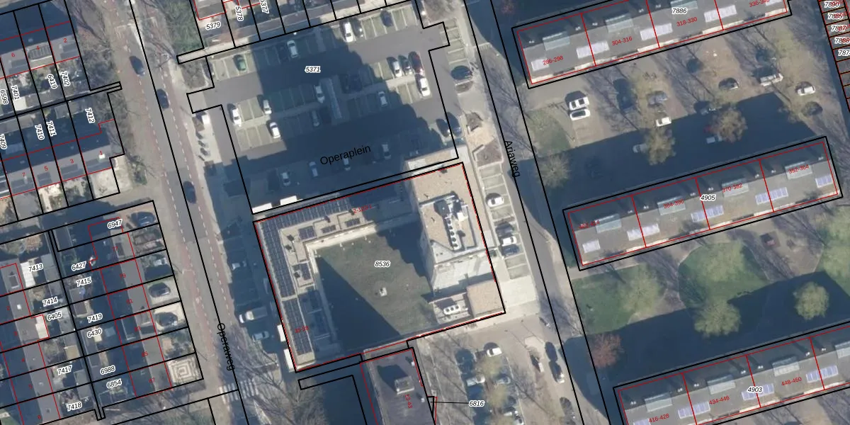 Het perceel waarop Operaplein 112 staat heeft een oppervlakte van 1905 m². Dit is een zeer groot perceel. De perceeloppervlakte wordt geregistreerd door het Kadaster. Gedetailleerde informatie over de maten van dit perceel kunt u vinden in het rapport Kadastrale kaart met maatvoering van Operaplein 112.