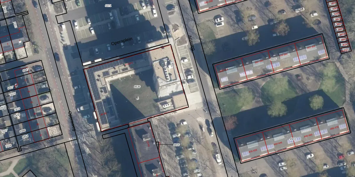 Het perceel waarop Operaplein 122-1 staat heeft een oppervlakte van 1905 m². Dit is een zeer groot perceel. De perceeloppervlakte wordt geregistreerd door het Kadaster. Gedetailleerde informatie over de maten van dit perceel kunt u vinden in het rapport Kadastrale kaart met maatvoering van Operaplein 122-1.