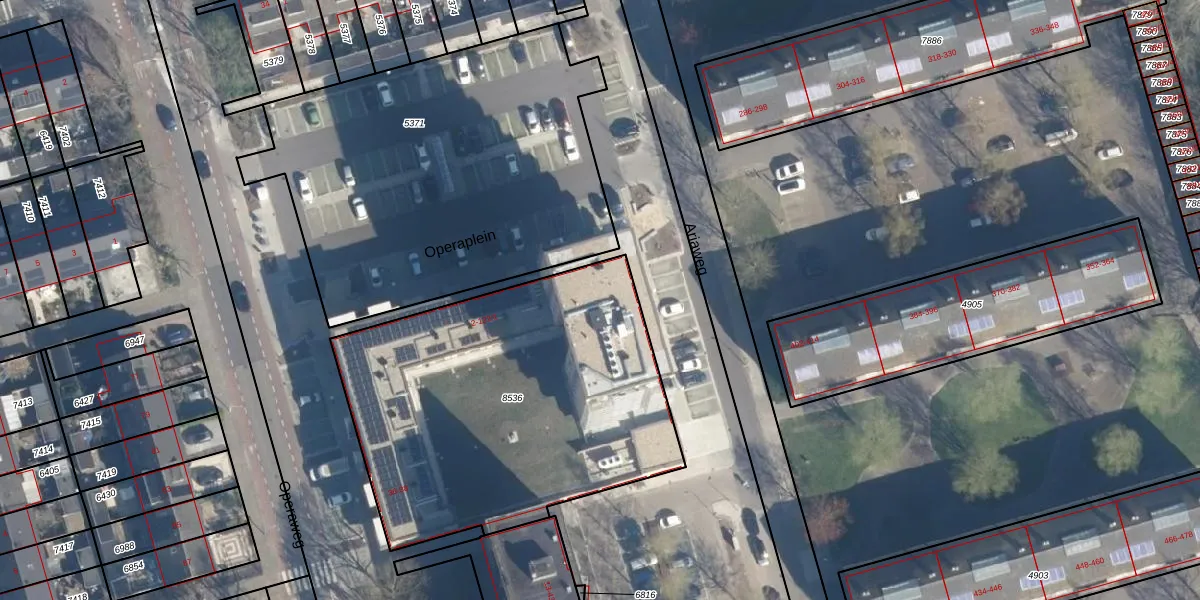 Het perceel waarop Operaplein 64 staat heeft een oppervlakte van 1905 m². Dit is een zeer groot perceel. De perceeloppervlakte wordt geregistreerd door het Kadaster. Gedetailleerde informatie over de maten van dit perceel kunt u vinden in het rapport Kadastrale kaart met maatvoering van Operaplein 64.