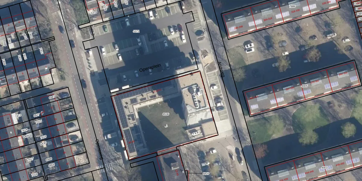 Het perceel waarop Operaplein 94 staat heeft een oppervlakte van 1905 m². Dit is een zeer groot perceel. De perceeloppervlakte wordt geregistreerd door het Kadaster. Gedetailleerde informatie over de maten van dit perceel kunt u vinden in het rapport Kadastrale kaart met maatvoering van Operaplein 94.