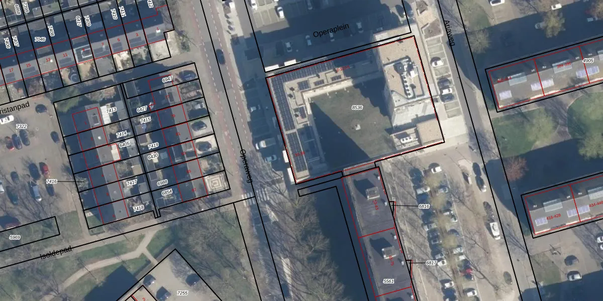 Operaweg 36 is gelegen op kadastraal perceel AMF00A8536. Deze kadastrale aanduiding is uniek en wordt gebruikt door het Kadaster om eigendomsrechten en andere zakelijke rechten vast te leggen. Het perceel maakt onderdeel uit van de kadastrale gemeente Amersfoort.