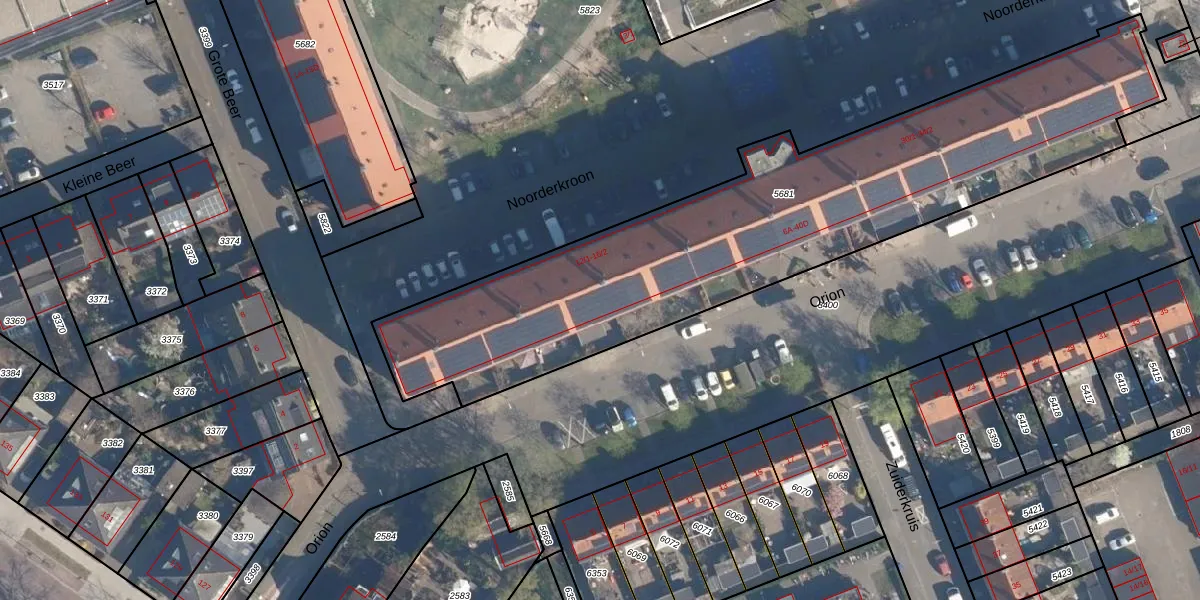 Het perceel waarop Orion 8-B staat heeft een oppervlakte van 2520 m². Dit is een zeer groot perceel. De perceeloppervlakte wordt geregistreerd door het Kadaster. Gedetailleerde informatie over de maten van dit perceel kunt u vinden in het rapport Kadastrale kaart met maatvoering van Orion 8-B.