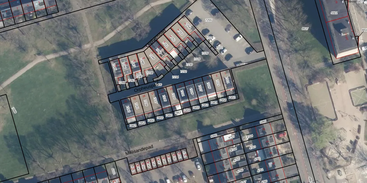 Het perceel waarop Orpheuspad 11 staat heeft een oppervlakte van 71 m². Dit is een klein perceel. De perceeloppervlakte wordt geregistreerd door het Kadaster. Gedetailleerde informatie over de maten van dit perceel kunt u vinden in het rapport Kadastrale kaart met maatvoering van Orpheuspad 11.