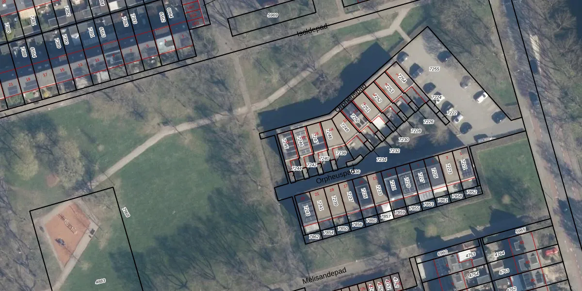 Het perceel waarop Orpheuspad 20 staat heeft een oppervlakte van 82 m². Dit is een klein perceel. De perceeloppervlakte wordt geregistreerd door het Kadaster. Gedetailleerde informatie over de maten van dit perceel kunt u vinden in het rapport Kadastrale kaart met maatvoering van Orpheuspad 20.