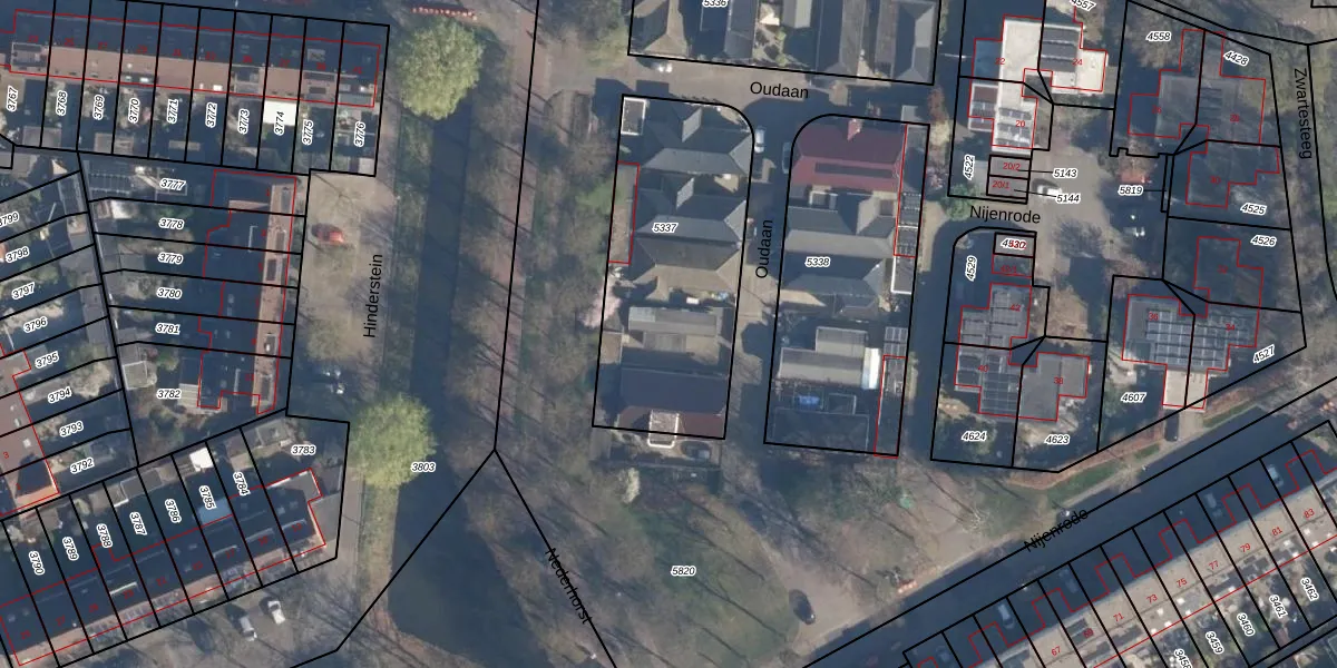 Het perceel waarop Oudaan 2 staat heeft een oppervlakte van 990 m². Dit is een groot perceel. De perceeloppervlakte wordt geregistreerd door het Kadaster. Gedetailleerde informatie over de maten van dit perceel kunt u vinden in het rapport Kadastrale kaart met maatvoering van Oudaan 2.