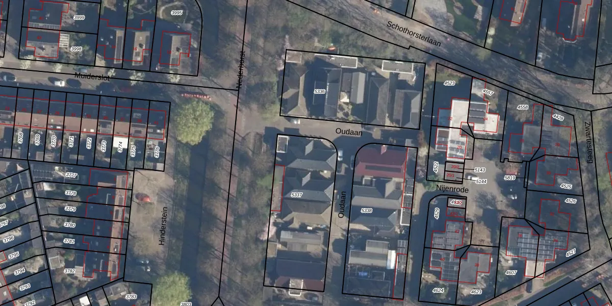 Het perceel waarop Oudaan 5 staat heeft een oppervlakte van 990 m². Dit is een groot perceel. De perceeloppervlakte wordt geregistreerd door het Kadaster. Gedetailleerde informatie over de maten van dit perceel kunt u vinden in het rapport Kadastrale kaart met maatvoering van Oudaan 5.