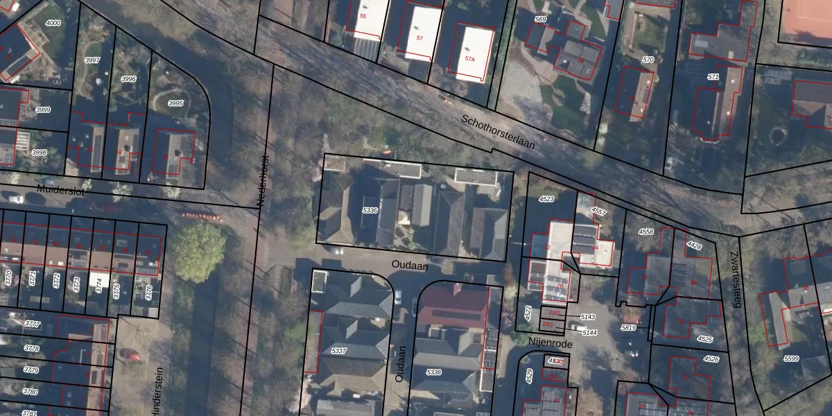 Het perceel waarop Oudaan 8 staat heeft een oppervlakte van 995 m². Dit is een groot perceel. De perceeloppervlakte wordt geregistreerd door het Kadaster. Gedetailleerde informatie over de maten van dit perceel kunt u vinden in het rapport Kadastrale kaart met maatvoering van Oudaan 8.