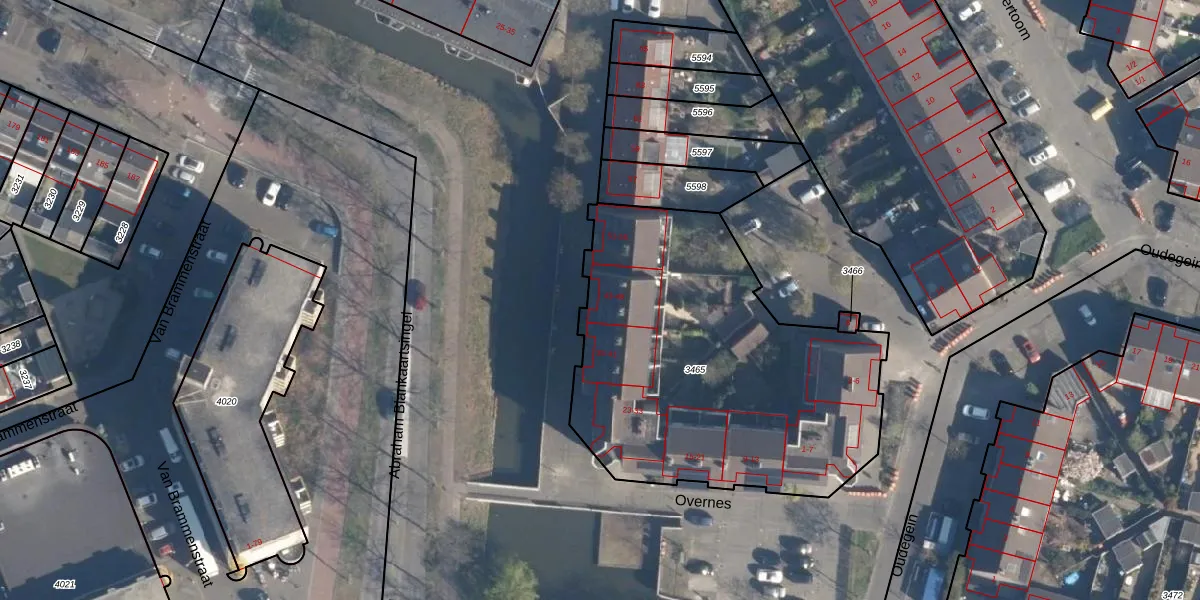 Overnes 43 is gelegen op kadastraal perceel AMF00K3465. Deze kadastrale aanduiding is uniek en wordt gebruikt door het Kadaster om eigendomsrechten en andere zakelijke rechten vast te leggen. Het perceel maakt onderdeel uit van de kadastrale gemeente Amersfoort.