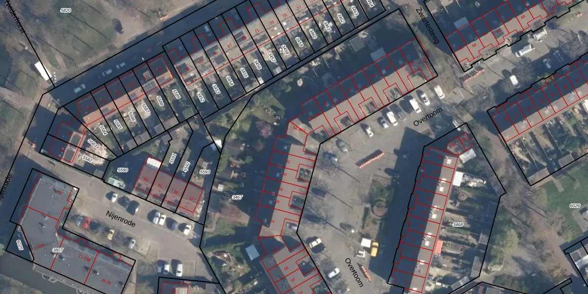 Het perceel waarop Overtoom 34 staat heeft een oppervlakte van 4670 m². Dit is een zeer groot perceel. De perceeloppervlakte wordt geregistreerd door het Kadaster. Gedetailleerde informatie over de maten van dit perceel kunt u vinden in het rapport Kadastrale kaart met maatvoering van Overtoom 34.