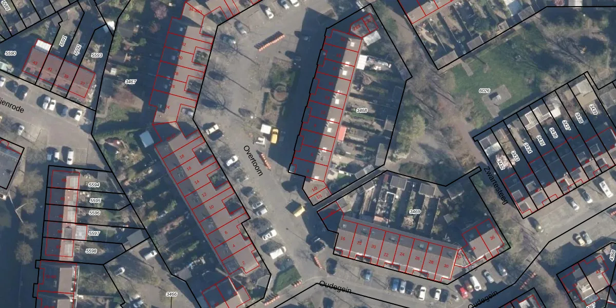 Het perceel waarop Overtoom 5 staat heeft een oppervlakte van 1540 m². Dit is een zeer groot perceel. De perceeloppervlakte wordt geregistreerd door het Kadaster. Gedetailleerde informatie over de maten van dit perceel kunt u vinden in het rapport Kadastrale kaart met maatvoering van Overtoom 5.