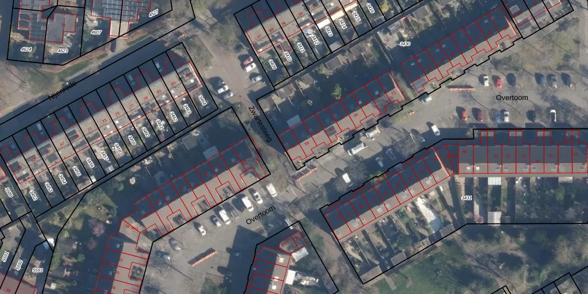 Het perceel waarop Overtoom 56 staat heeft een oppervlakte van 2507 m². Dit is een zeer groot perceel. De perceeloppervlakte wordt geregistreerd door het Kadaster. Gedetailleerde informatie over de maten van dit perceel kunt u vinden in het rapport Kadastrale kaart met maatvoering van Overtoom 56.
