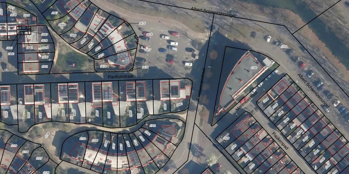 Gebruik de zoekbalk of klik op een perceel voor informatie over de adressen binnen dit perceel.