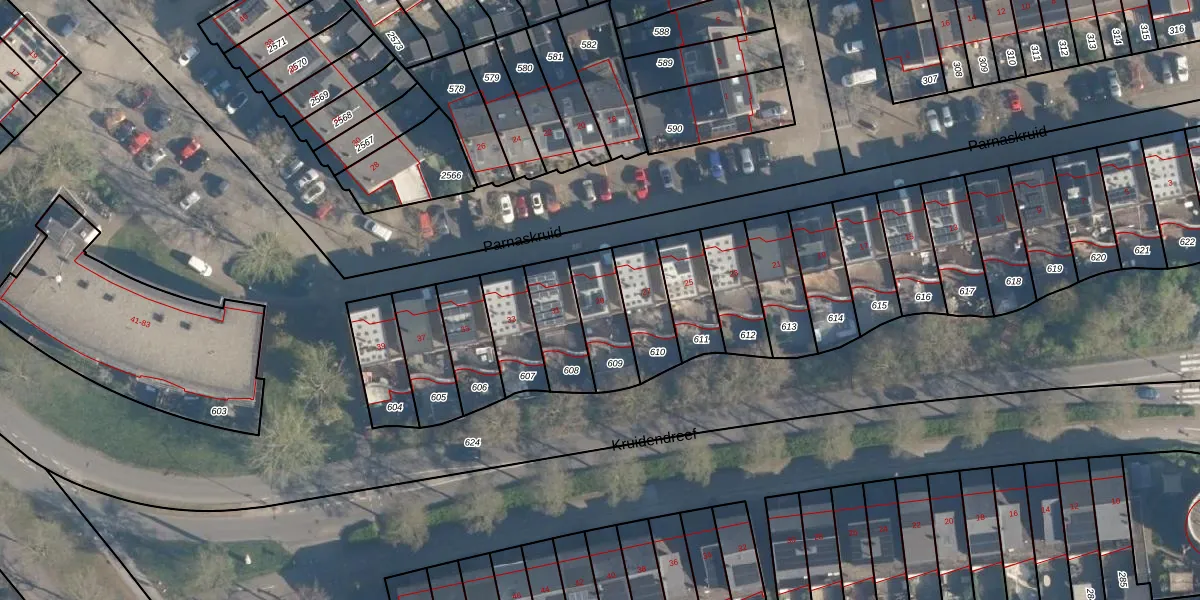 Parnaskruid 29 is gelegen op kadastraal perceel AMF00P609. Deze kadastrale aanduiding is uniek en wordt gebruikt door het Kadaster om eigendomsrechten en andere zakelijke rechten vast te leggen. Het perceel maakt onderdeel uit van de kadastrale gemeente Amersfoort.