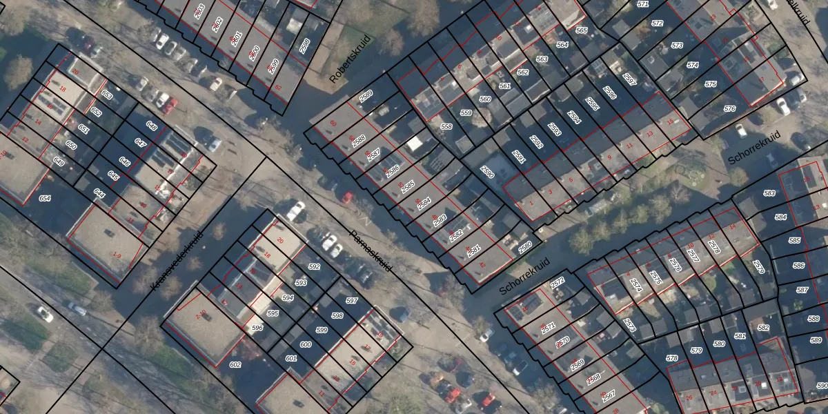 Parnaskruid 50 is gelegen op kadastraal perceel AMF00P2584. Deze kadastrale aanduiding is uniek en wordt gebruikt door het Kadaster om eigendomsrechten en andere zakelijke rechten vast te leggen. Het perceel maakt onderdeel uit van de kadastrale gemeente Amersfoort.