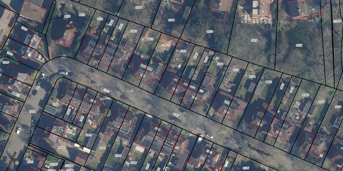 Het perceel waarop Pascalstraat 28 staat heeft een oppervlakte van 365 m². Dit is een groot perceel. De perceeloppervlakte wordt geregistreerd door het Kadaster. Gedetailleerde informatie over de maten van dit perceel kunt u vinden in het rapport Kadastrale kaart met maatvoering van Pascalstraat 28.