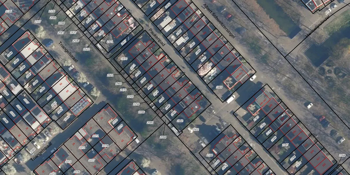 Het perceel waarop Paukenpad 45 staat heeft een oppervlakte van 123 m². Dit is een middelgroot perceel. De perceeloppervlakte wordt geregistreerd door het Kadaster. Gedetailleerde informatie over de maten van dit perceel kunt u vinden in het rapport Kadastrale kaart met maatvoering van Paukenpad 45.