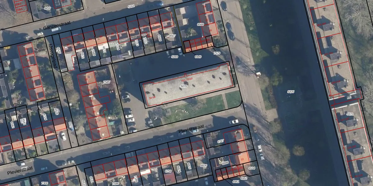 Plevierstraat 34 is gelegen op kadastraal perceel AMF00A5070. Deze kadastrale aanduiding is uniek en wordt gebruikt door het Kadaster om eigendomsrechten en andere zakelijke rechten vast te leggen. Het perceel maakt onderdeel uit van de kadastrale gemeente Amersfoort.