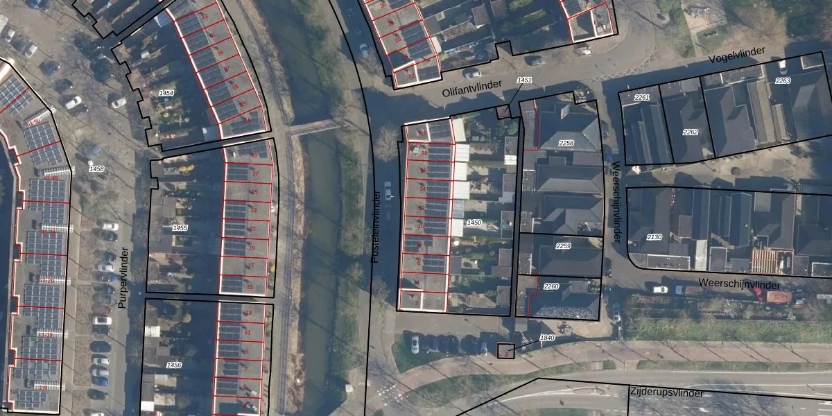 Het perceel waarop Posteleinvlinder 12 staat heeft een oppervlakte van 1330 m². Dit is een zeer groot perceel. De perceeloppervlakte wordt geregistreerd door het Kadaster. Gedetailleerde informatie over de maten van dit perceel kunt u vinden in het rapport Kadastrale kaart met maatvoering van Posteleinvlinder 12.