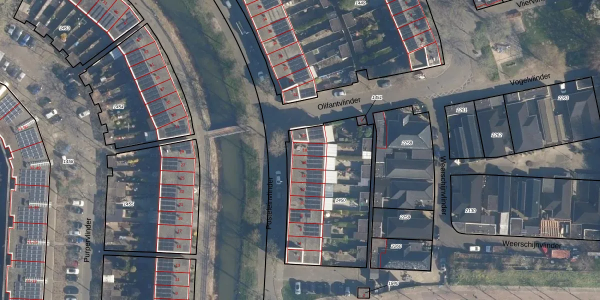 Het perceel waarop Posteleinvlinder 18 staat heeft een oppervlakte van 1330 m². Dit is een zeer groot perceel. De perceeloppervlakte wordt geregistreerd door het Kadaster. Gedetailleerde informatie over de maten van dit perceel kunt u vinden in het rapport Kadastrale kaart met maatvoering van Posteleinvlinder 18.